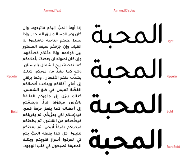 Boutros Almond, a bilingual modern font with two optical sizes: Body Text and Headline